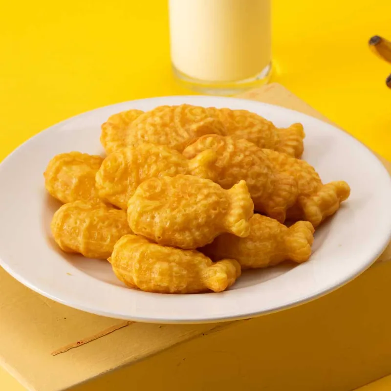 우리 땅에서 자란 쌀로 만들어 건강한 붕어빵이에요. 여기에 타피오카를 더해 더욱 쫀득하게 완성했어요. 겉은 바삭하고 속은 쫀득 촉촉한 맛이 일품이랍니다. 노릇하게 구워 달콤한 붕어빵의 풍미를 만나보세요.