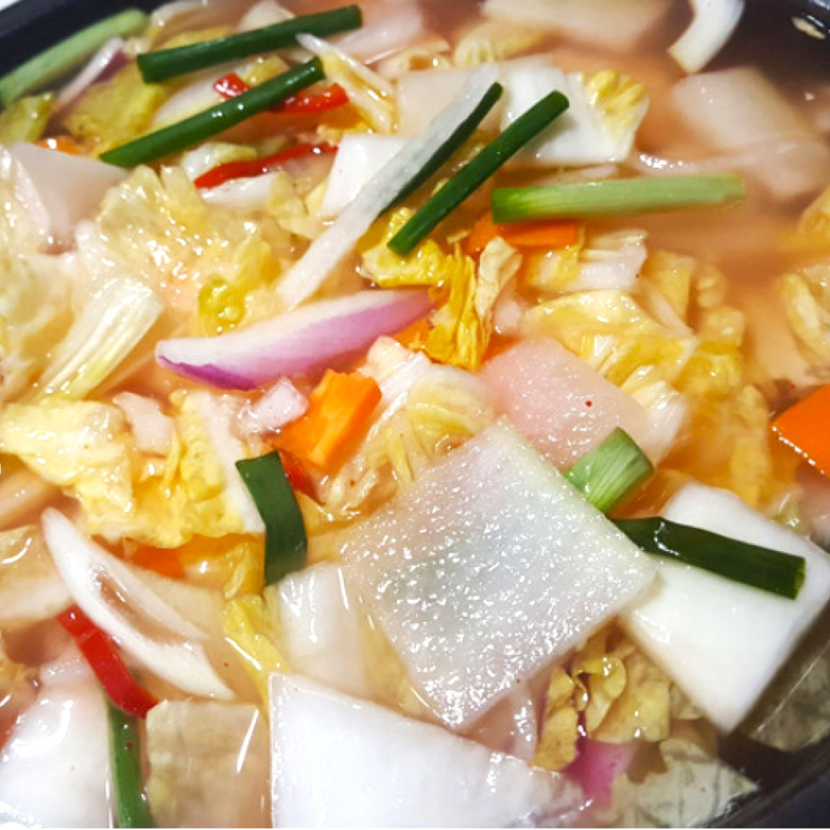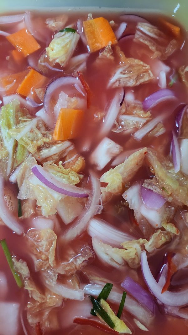 조금 싱겁지만 본인들 취항에 따라 소금.땡초 몆개썰어넣고 우린 당근을 좋아해서 당근 한개정도 썰어 추가하고 실온에서 이틀 있다가 맛보니 딱 좋으네요