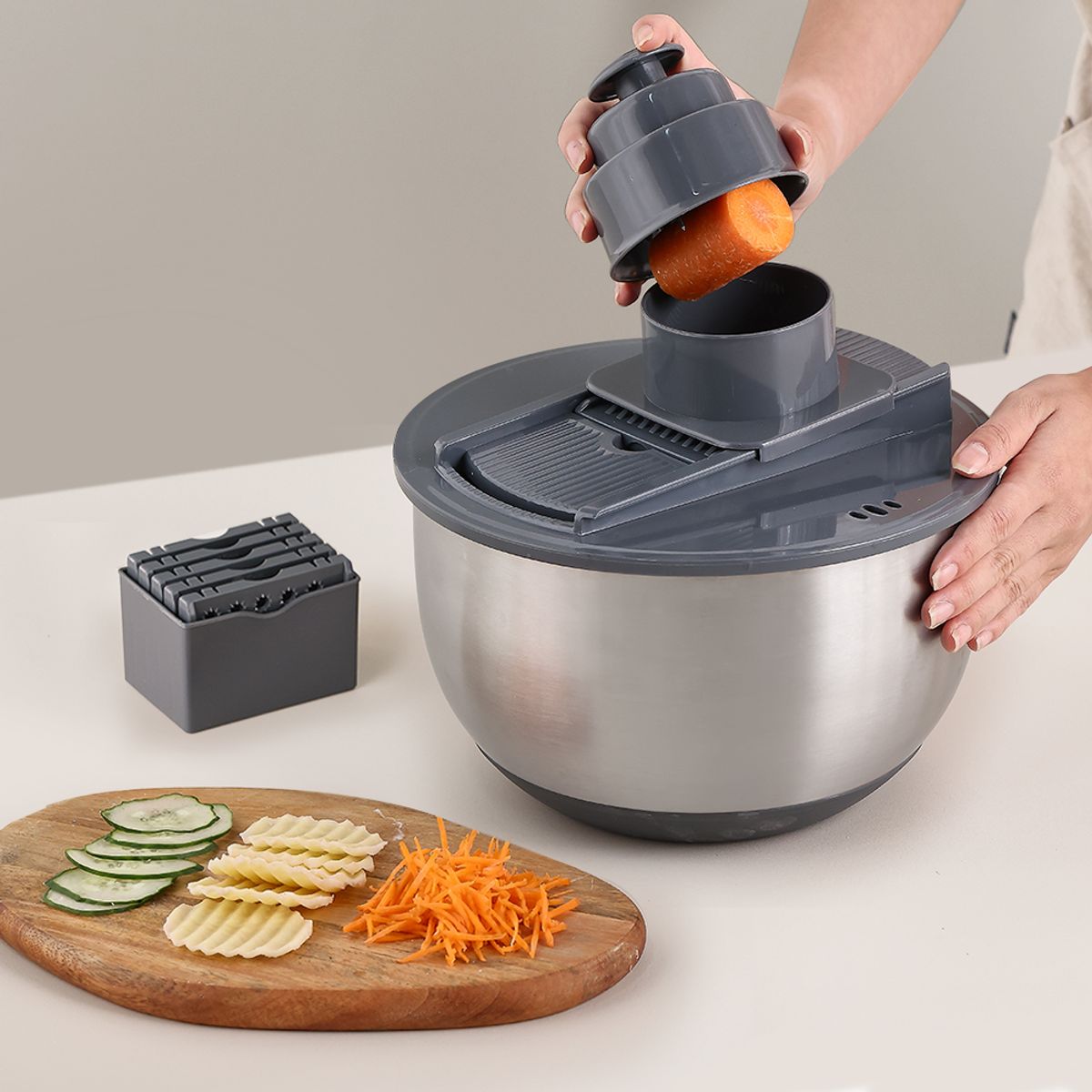 무디타 프로페셔널 304 스텐 믹싱볼 야채 탈수기 5L + 만능 채칼 6종 세트 / 믹싱볼 채반 세트 양배추채칼