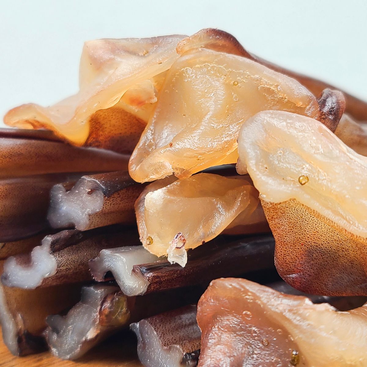 대왕오징어 다리로 준비한 건어물 간식입니다. 쫀득하면서도 말랑말랑한 식감이 일품이에요!