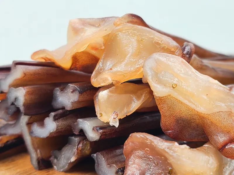 대왕오징어 다리로 준비한 건어물 간식을 준비했어요. 쫀득하면서도 말랑말랑한 식감으로 남녀노소 누구나 편하게 드실 수 있는 건어물입니다. 딱딱하지 않아 씹는 데 불편함을 확 덜어냈으며, 달고 짠 매력까지 함께 느껴볼 수 있답니다.