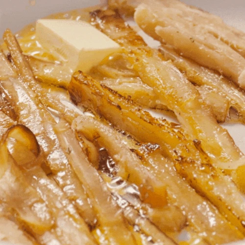 영화관에서 먹던 버터구이 오징어 그 맛 그대로를 재현했습니다. 페스츄리처럼 부드럽게 쭉~ 늘어나요. 뻣뻣한 오징어가 아닌 부드럽고 촉촉한 식감이랍니다. 맥주를 부르는 간식이에요!