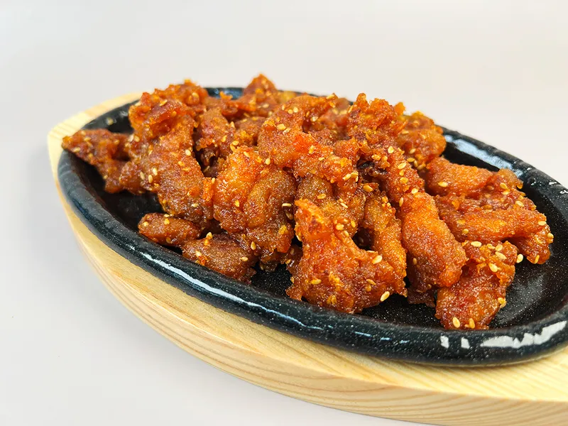 닭껍질에 찹쌀을 묻힌 다음 100% 콩기름에 튀겨 고소함이 일품입니다! 가격이 높더라도 건강을 생각해 식용유 대신 콩기름을 사용합니다.