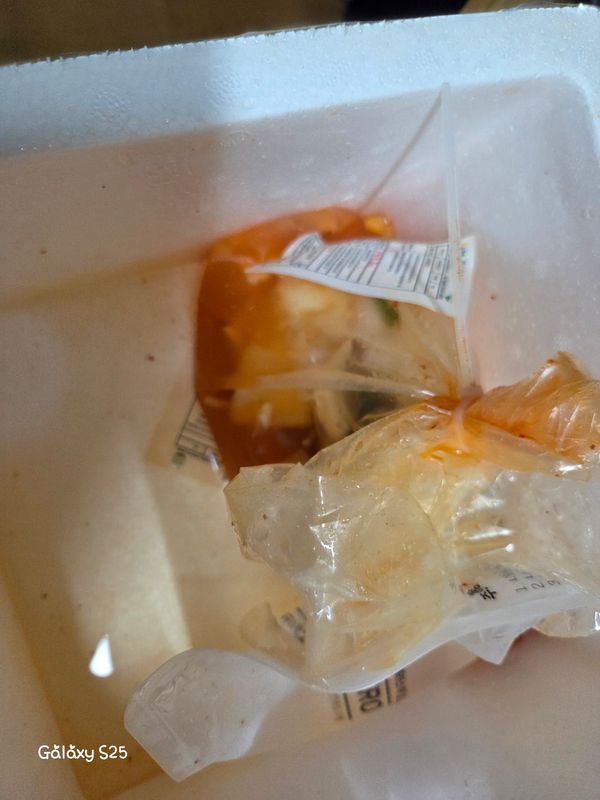 받자마자 포장 풀고 옮겨담았는데 국물양이 적은듯해보이네요 국물이 새어나온거 같기도 하고요~맛은 괜찮은듯 합니다