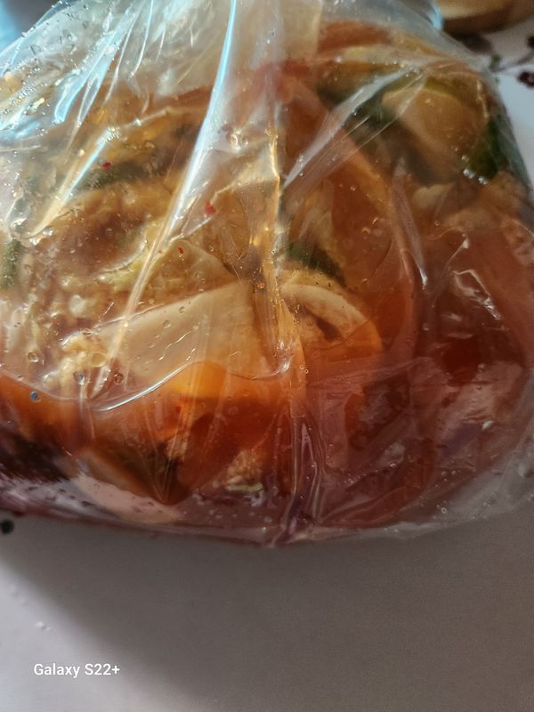 스티로폴 상자안에 국물이 조금 새어 나왔어요. 김치 국물 첫맛이 좀 매콤해서 걱정했는데 냉장고에 하루 뒀다가 먹으니 매운맛이 사라져서 먹기 좋은 상태가 됬습니다.