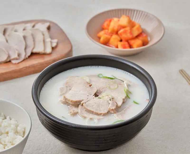 오랜 시간 푹 끓여내 깊고 진한 맛의 국물이 일품이에요. 뜨끈한 국물 밥 말아 고기 한 점 올려 먹어 주면 속 편한 식사를 제대로 즐기실 수 있어요.