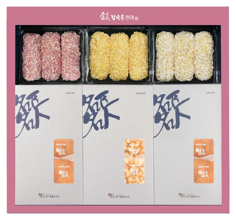 [약과] 꿀약과 / [유과] 찹쌀, 백련초, 단호박 / [강정] 현미 구성입니다.