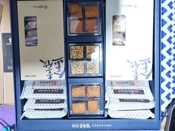2단으로 이루어진 상자 안에는 약과, 강정, 유과가 다채롭게 들어가 있습니다. 국내산 꿀과 조청을 사용해 깊은 풍미를 주는 꿀약과! 국내산 찹쌀을 발효하여 겉은 바삭, 속은 쫀득한 식감을 살린 유과까지! 맛있는 전통간식을 즐겨보세요.