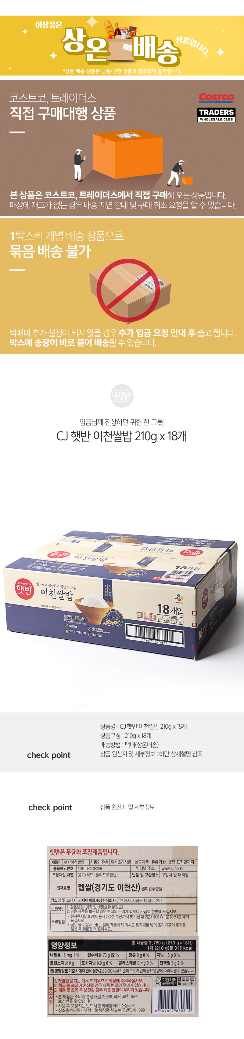 [코스트코] [CJ]햇반 이천쌀밥 210g x 18개
