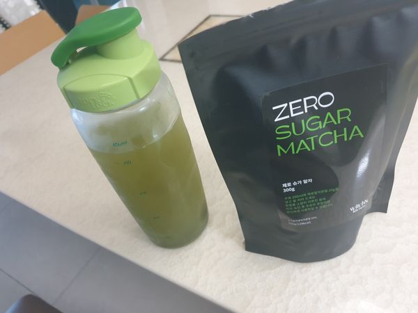 ㅎㅎ 첨에 모르고 말차가루 많이 담았다가 농도 맞추느라 양이 엄청 늘어나버렸어요. 건강한 말차향 좋아요. 물처럼 묽게 자주 마시려구요~