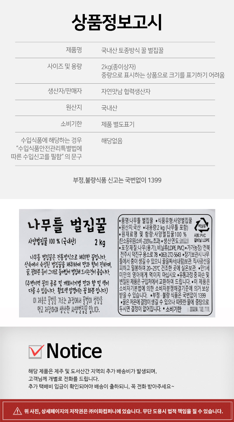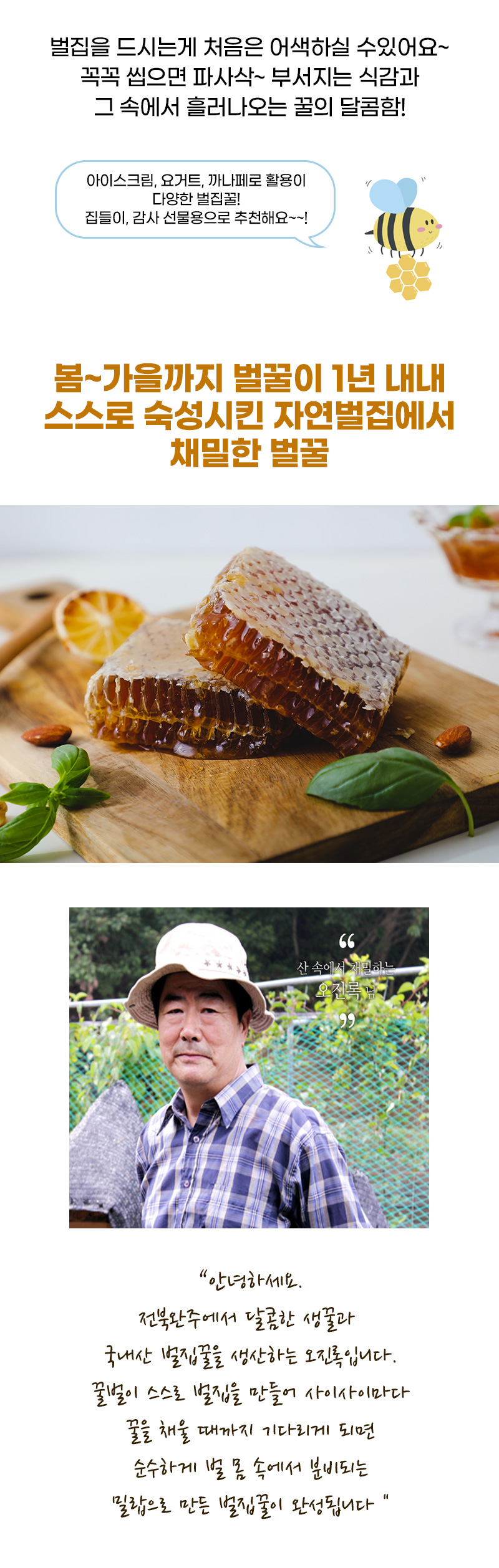 국내산 토종방식 꿀 벌집꿀2kg (종이상자/보자기포장)