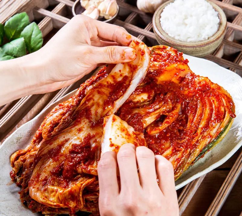 남도 전통 특유의 칼칼함을 담은 김치예요. 오랜 노하우를 담은 육수를 다린 후, 고춧가루에 잘 말린 빨간 고추와 생고추를 곱게 갈아 넣었어요. 질 좋은 멸치 액젓과 새우젓, 우리 땅에서 난 농수산물을 더해 양념을 넣고 신선한 배추에 버무렸답니다. 쭉 찢어 고슬고슬 따뜻한 흰쌀밥에 올려 드셔보세요. 깊고 진한 감칠맛이 입안에 맴돌 거예요.