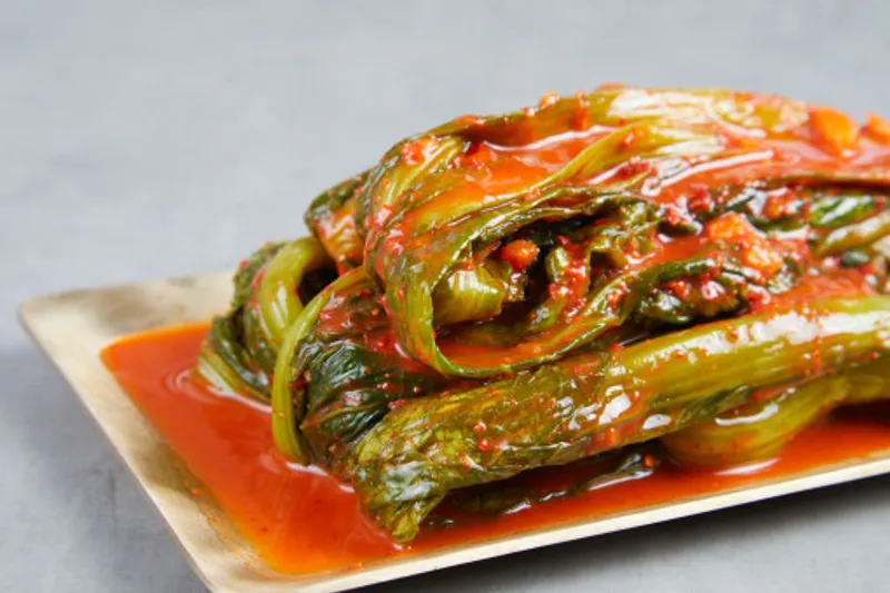 조미료로 김치 맛을 내지 않고, 모든 재료 빠짐없이 100% 우리 농산물로 만든 갓김치입니다. 양념을 아끼지 않고 담갔으며 쌉싸름한 갓 본연의 매력을 듬뿍 느낄 수 있어요.