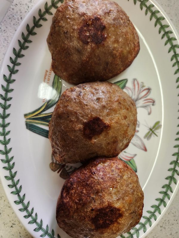 아들이 밥버거를 좋아하는데 거기에 넣어서 먹으면 넘 맛있는 떡갈비입니다 팬에 귑기는 모양이 어렵게 만들어져 있어서 에어프라이기에 구워서 먹으면 맛있어요