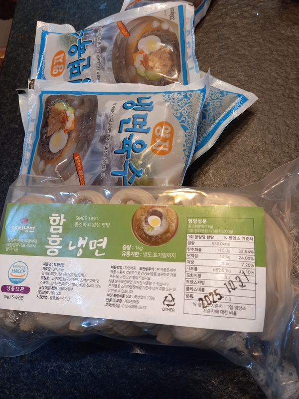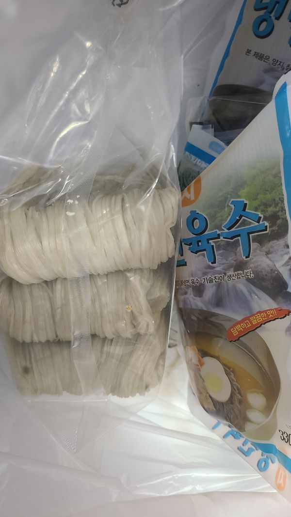 후기대로 하얗고 가느다란 면발 최곱니다ㆍ 물 끓어오르면 샤워하듯 휘휘 저어서 바로 건져야 쫄깃거려요~ 물냉면이지만 저는 비빔장 만들어 먹었고 가족은 물냉으로 겨자소스 넣어서 먹었어요~ 면만 따로 구입할수 있었으면 좋겠어요