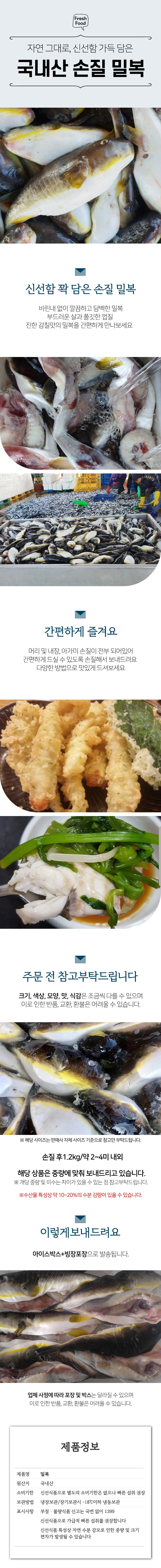국내산 손질 밀복 손질후중량 1.2kg