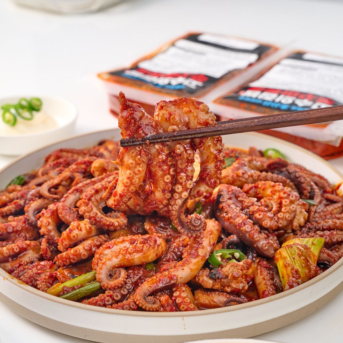 쫄깃쫄깃한 신선한 쭈꾸미에 비법 양념을 더해 감칠맛 높은 쭈꾸미볶음을 만들었어요. 자글자글~ 끓는 소리에도 군침이 꿀꺽 넘어간답니다! 오랜 연구 끝에 탄생한 감칠맛으로 그 깊이부터 남다르죠 :)