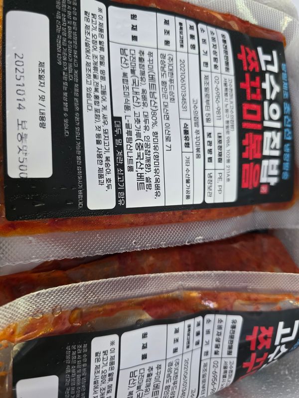 큼직큼직!!쫄깃쫄깃!!달달!! 그리 맵지 않고 맛나요~ 매운거 정말 못 드리는 분은 쭈삼볶으로 ~~^^ 우리는 가족이 많은 관계로 삼겹살 추가로 넣어서 조리해서 한끼 뚝딱했네요~~~^^