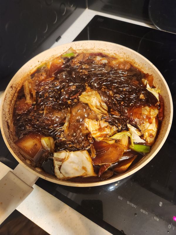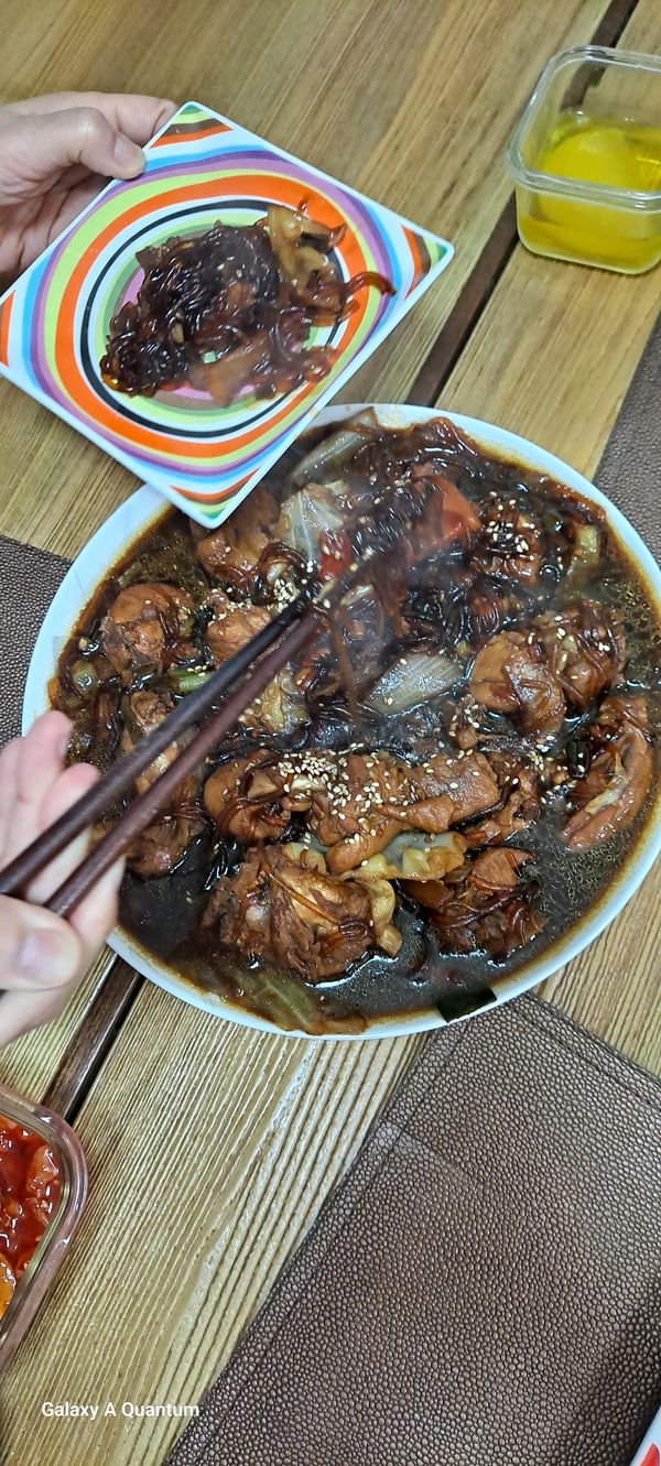 맛있어요 당면을 많이 줘요 색은 까맣게 양념되어있어요