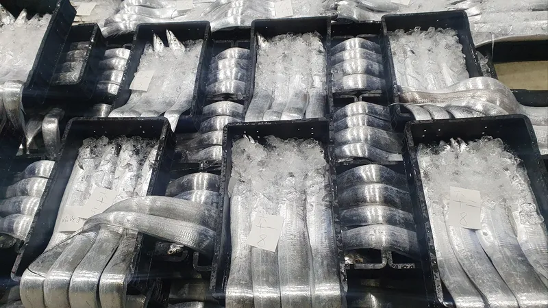 목포 항 근처 위판장에서 선별한 갈치를