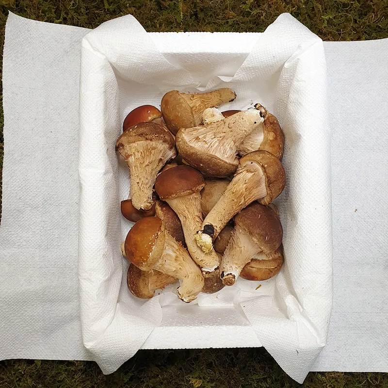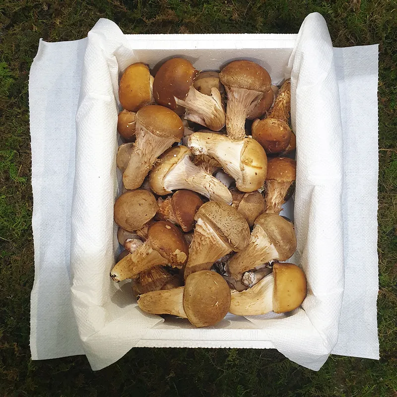 - 버섯을 신선한 상태로 배송하기 위해 저온 상태에서 하루 정도 예냉 과정을 거칩니다. 이 과정에서 버섯 표면 향은 조금 날아갈 수 있으나, 속향은 살아 있으니 참고해 주세요.