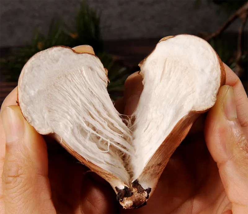 참송이버섯은 갓이 벌어지지 않고 두툼한 대가 특징입니다. 송이버섯처럼 치밀한 육질과 소복한 식감, 독특한 향과 맛을 자랑합니다.