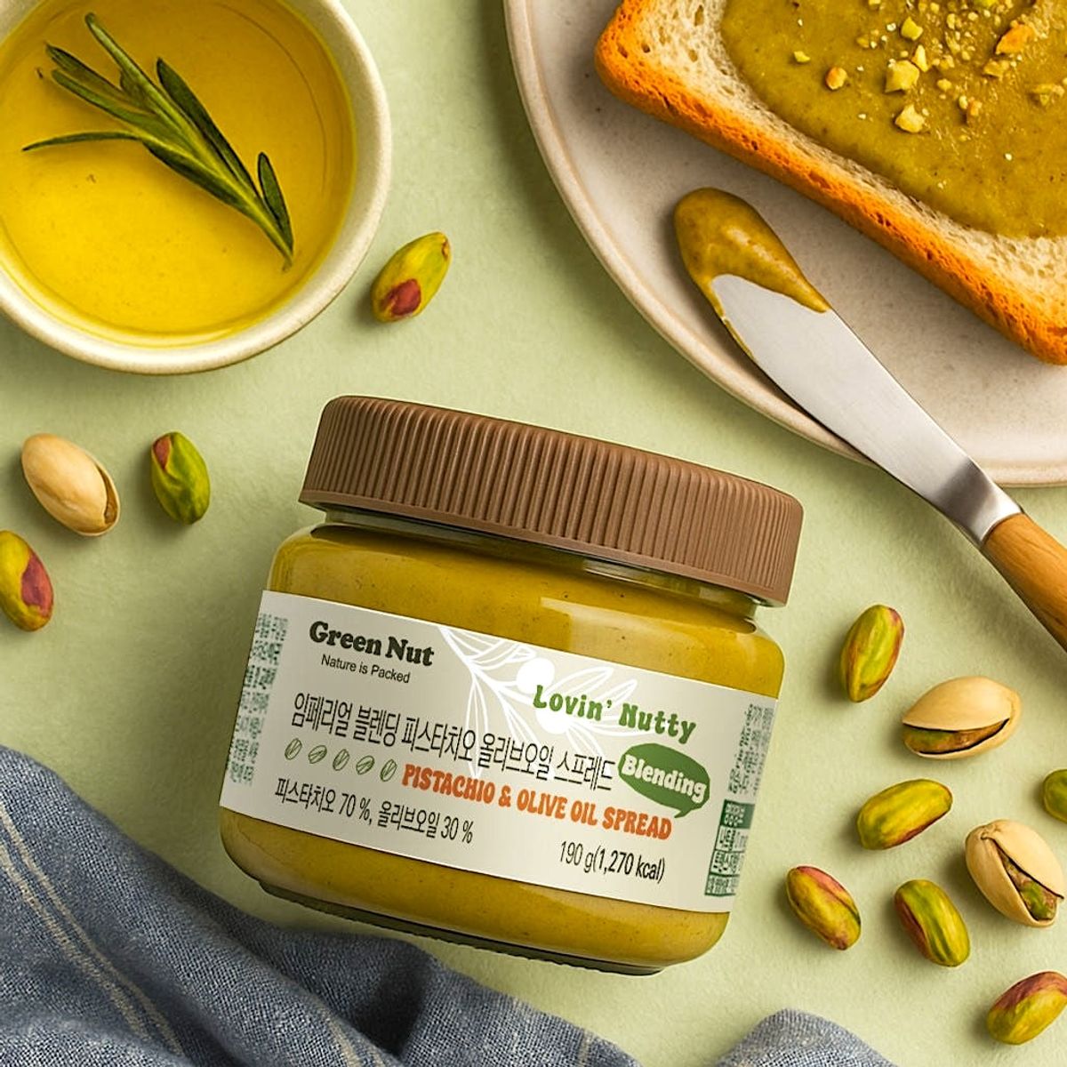 피스타치오의 고소함을 그대로 담은 피스타치오 올리브오일 스프레드 190g 1통