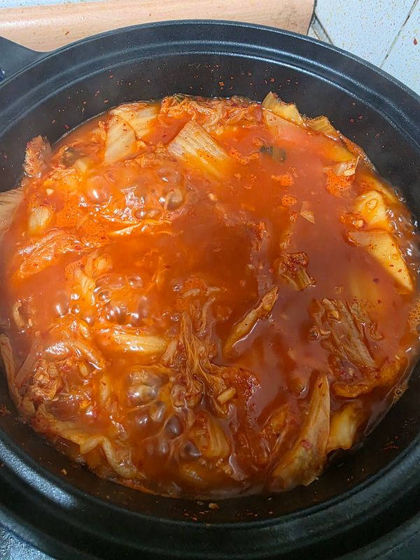 다 먹기전에 미리미리 준비해 먹고있는 김치입니다 찌개로도 맛있고 김치볶음밥으로도 좋아요 시원하고 내 입맛에는 이정도면...