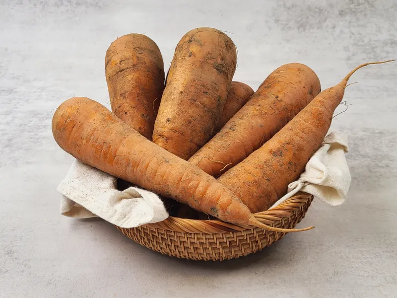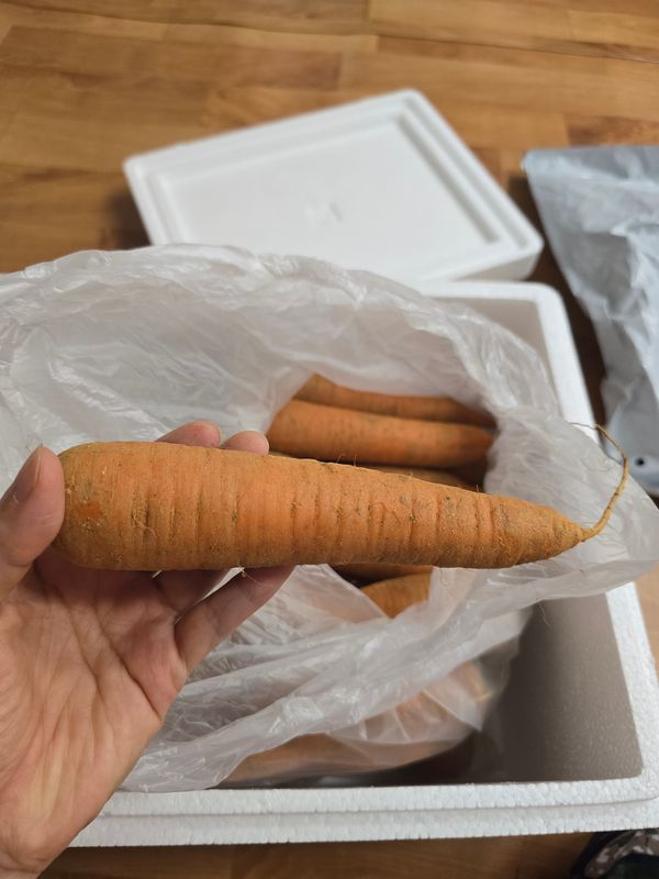 높은 수분 함량으로 단단한 육질을 가지고 있는 국내산 흙당근입니다. 당도가 높은 당근으로만 깐깐하게 선별하여 보내드려요.