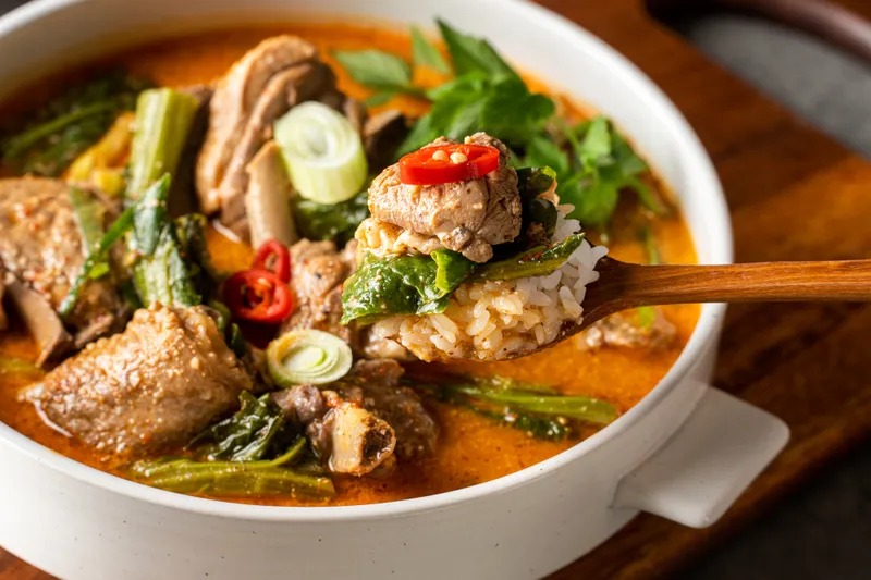 먼저 깊고 진한 국물을 한입 떠서 드셔보시고 야들야들한 오리고기 살을 발라 양념이 깊게 밴 고사리, 미나리와 함께 드셔보세요. 맛이 깊고 자극적이지 않아 남녀노소 모두 좋아하세요. 건강한 얼큰한 맛이 아주 중독성 있답니다.