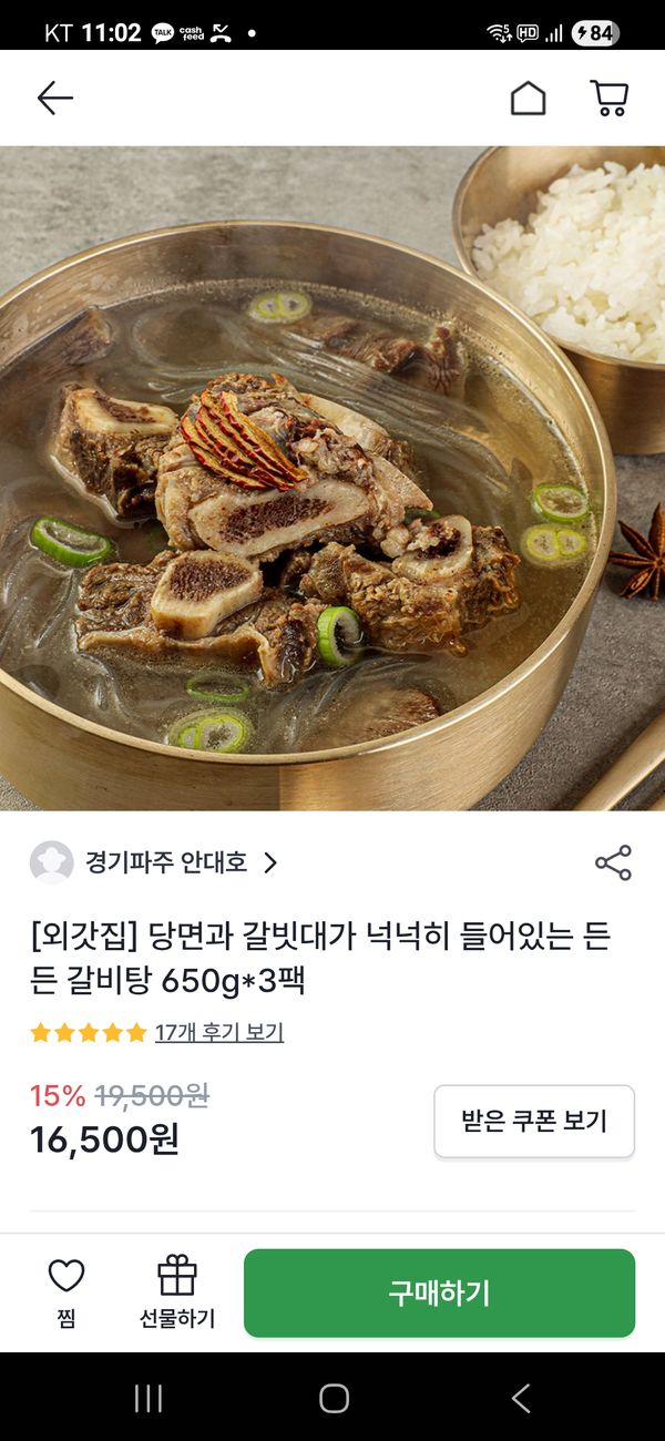 옵션: 갈비탕 650g*3팩