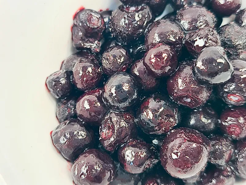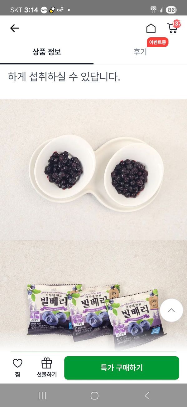 빌베리는 안토시아닌 함량이 높아 과육의 붉은색이 짙어 과즙 또한 붉은색을 띠게 됩니다. 섭취 시 옷(섬유) 등에 착색될 수 있으니 묻지 않게 주의해 주세요.