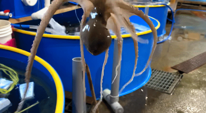 1. 가위로 낙지의 머리와 내장이 이어진 부분을 자른 후 머리를 뒤집어 내장을 제거해 주세요.