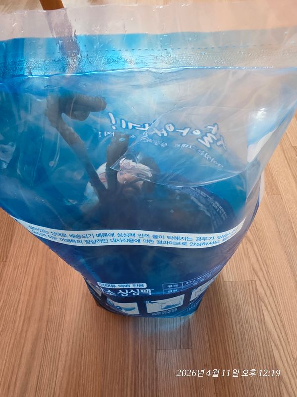 배달 왔는데 아직 살아있더군요. 싱싱하고 맛있었어요.