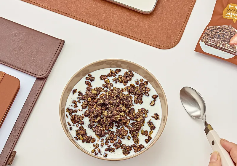 카카오의 진한 풍미가 돋보이는 그래놀라입니다. 곡물의 고소함이 더해져 깊고 풍부한 맛을 완성해요. 우유나 요거트와 함께 즐기면 더욱 풍성하고 맛있는 한 끼 식사로 즐길 수 있어요.