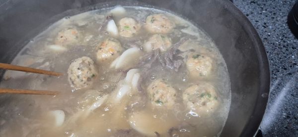 평안도 향토 음식인 굴림만두는 만두피를 쓰지 않고 소를 동그란 완자 모양으로 빚는 만두입니다. 저희는 보통 굴림만두에 탱글탱글한 새우살과 쫄깃한 낙지, 고소한 육즙의 국산 돼지고기를 더해 씹는 맛을 살렸습니다.