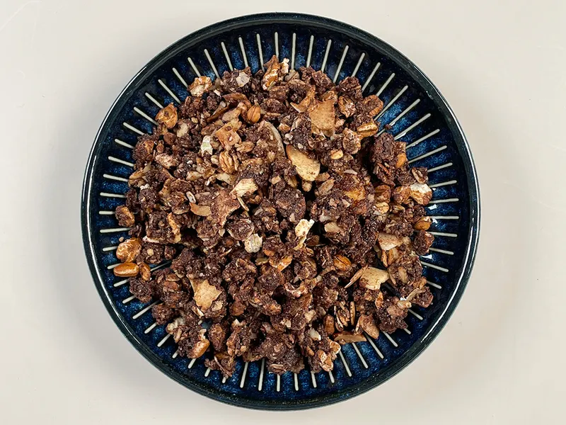 그래놀라에 카카오를 더해 고급스럽고 묵직한 다크 초콜릿 맛을 느낄 수 있습니다.