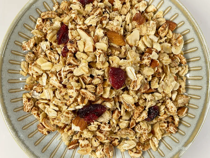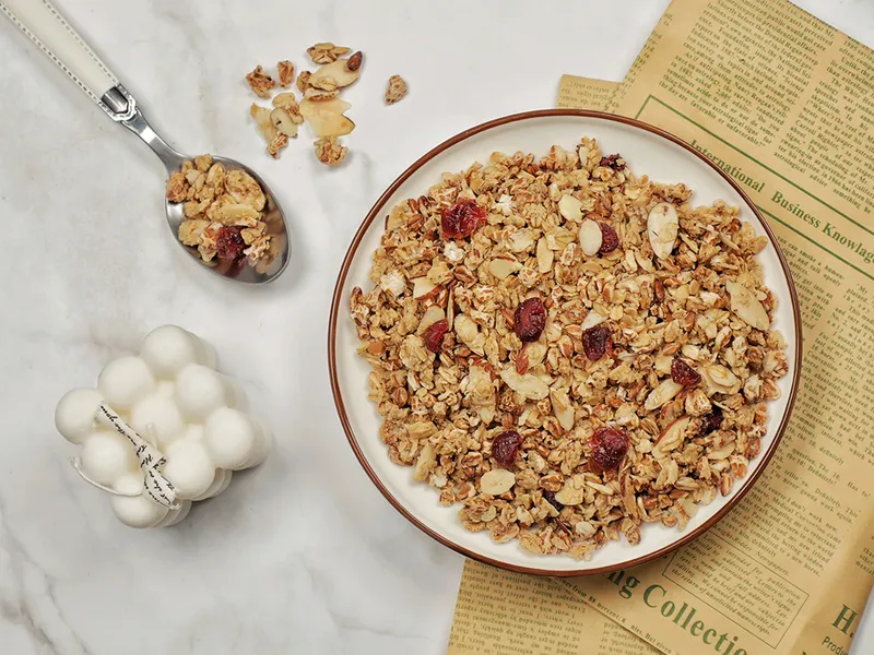 총 3번에 걸쳐 천천히 저온으로 로스팅하여 고소함과 바삭함을 끌어 올렸습니다. 딱딱하고 질긴 식감 없어 식사 대용이나 간식으로 먹기 좋습니다. 우유, 두유, 요거트와 함께 드시면 속을 든든하게 채워줍니다.