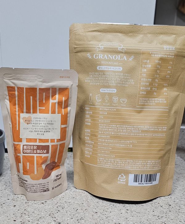 성분이 좋아서 구매했는데 바사삭 하고 맛있어요.  다만 뭉쳐 있는 느낌이 아니라  요거트에 뿌리거나 우유에 타서 맛있게 먹었어요.