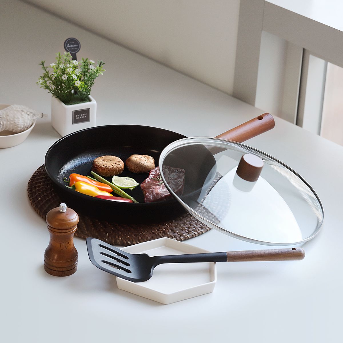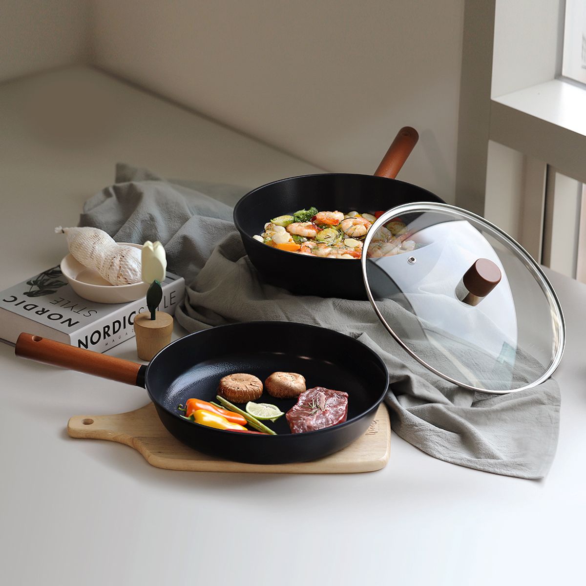 느와르 블랙 IH 인덕션 겸용 우드핸들 프라이팬 3종세트(팬28+궁중팬28+뚜껑28)