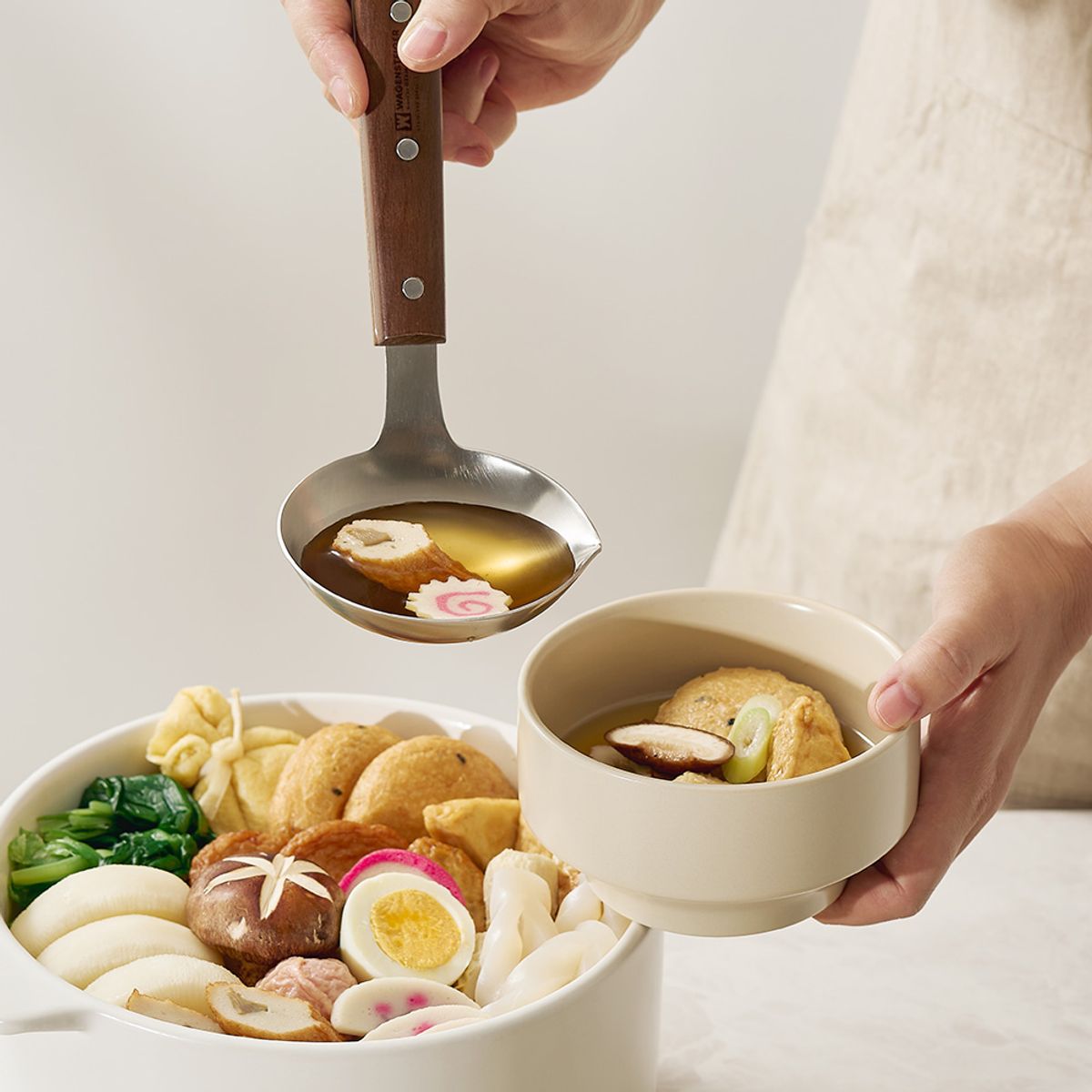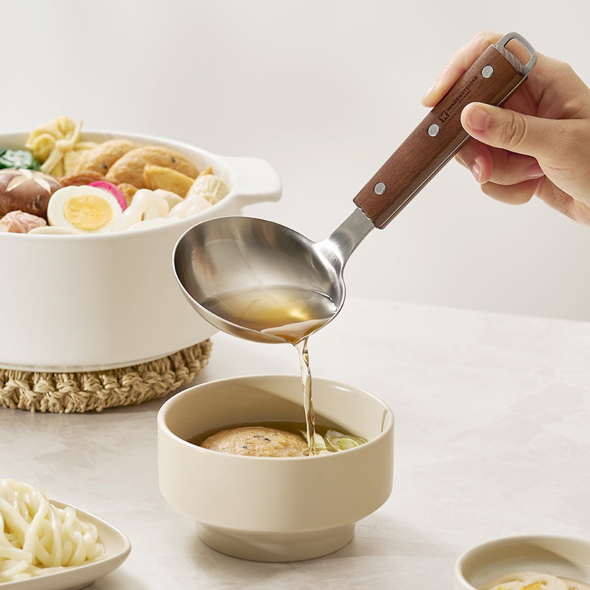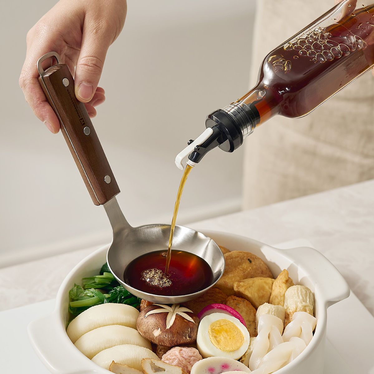 국물을 흘리지 않아 깔끔한 스텐 우든 레이들(스파우트)