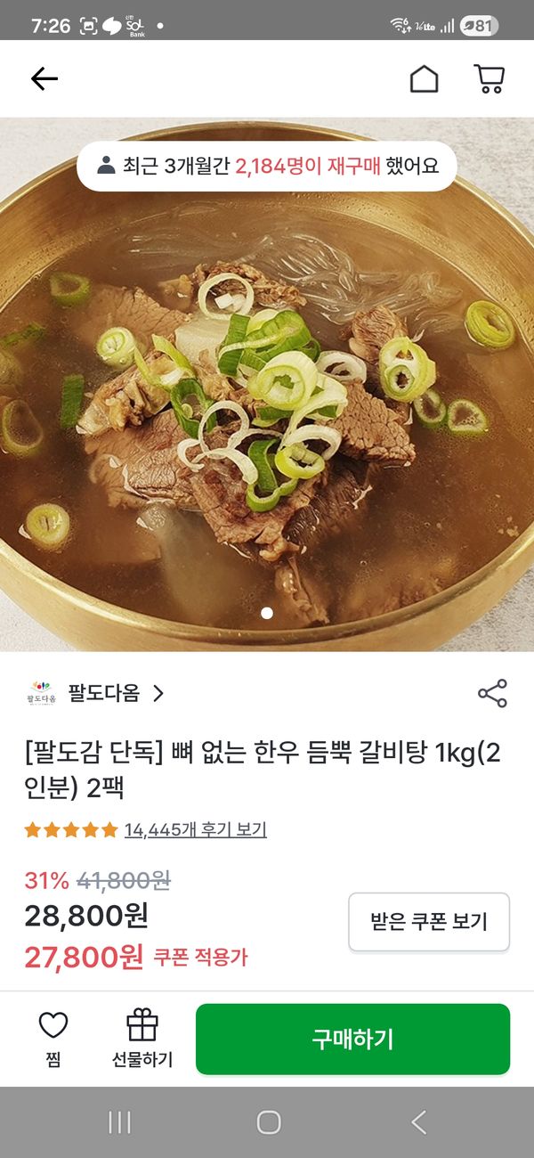 기대이상이예요..고기도 많고 당면과 무도 들어있어요.무는 냉동된거라 식감이 조금 덜했지만 고기랑 국물은 맛있었어요.1팩으로 3명정도는 먹을수있어요..든든하게 냉동실에 쟁여놉니다