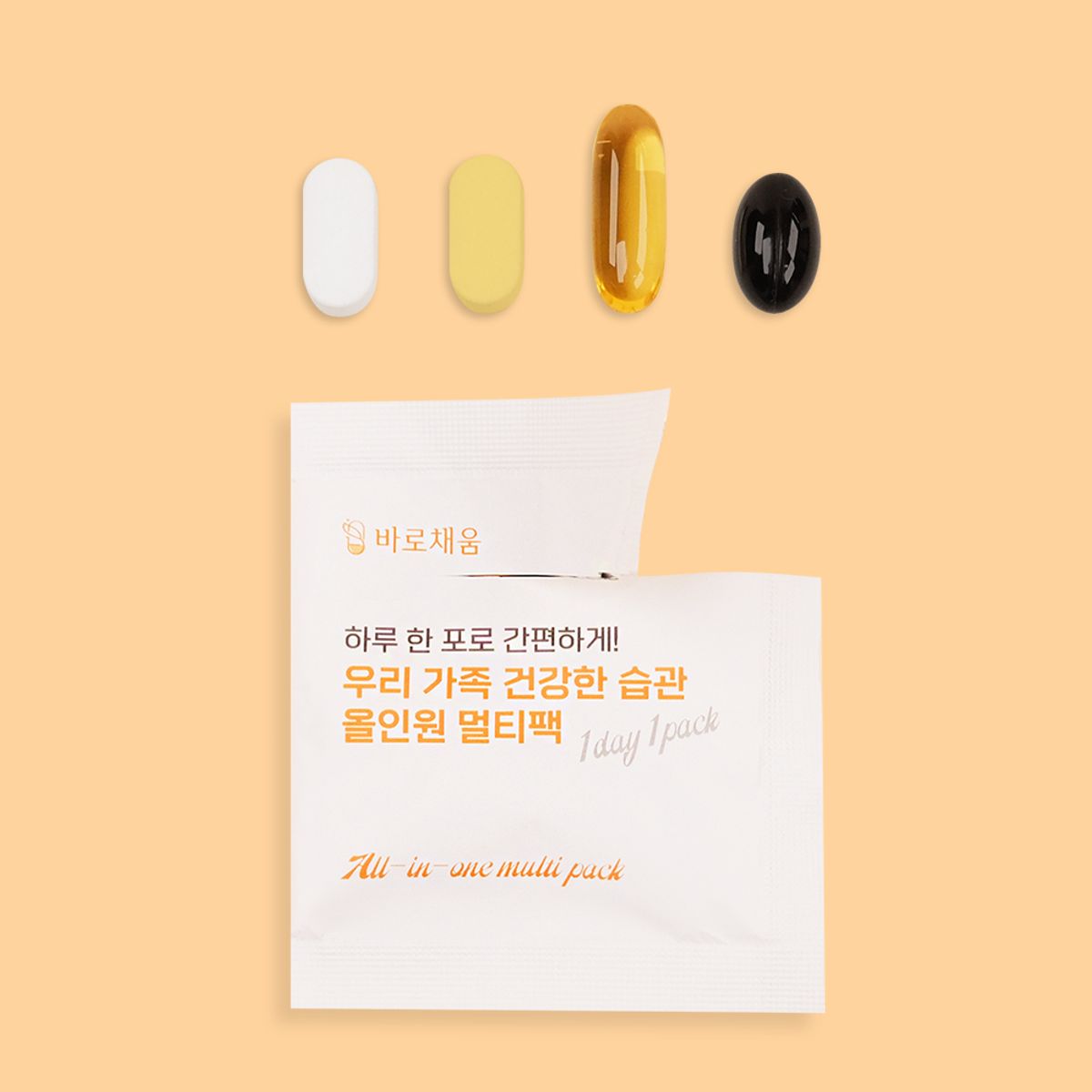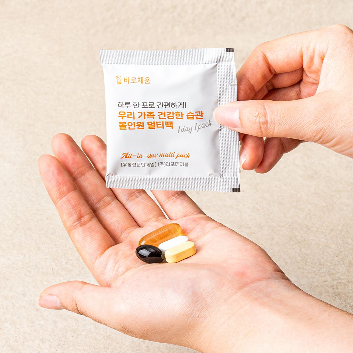 '우리 가족 건강한 습관 올인원 멀티팩'은 건강기능식품인 점 참고 부탁드립니다.