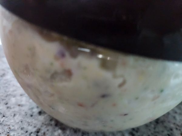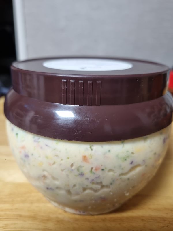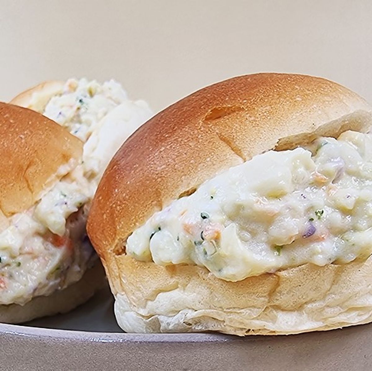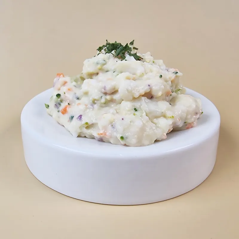 부드러운 감자에 고소한 마요네즈와 각종 채소가 더해진 감자샐러드입니다. 잘 익은 감자에 6가지 채소와 계란을 아낌없이 넣은 후 마요네즈에 버무렸습니다. 자극적이지 않아 그냥 드셔도 맛있습니다. 식빵이나 모닝빵에 발라드시면 간식으로도 한끼 식사로도 훌륭합니다! 거기에 딸기잼까지 추가하시면 더욱 맛있답니다.