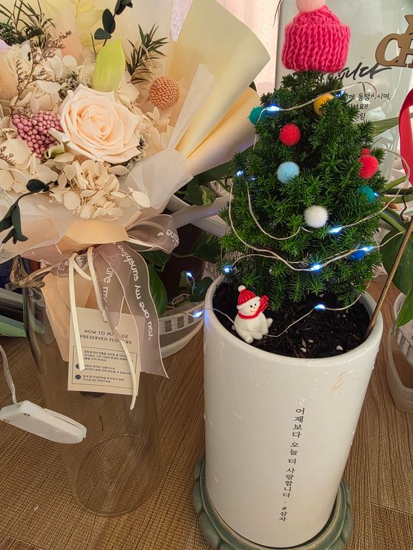 옵션: 엑설런트포인트(편백나무) 분갈이 화분 추가 / 트리 장식(+3000원) / 전구 추가(+5000원)