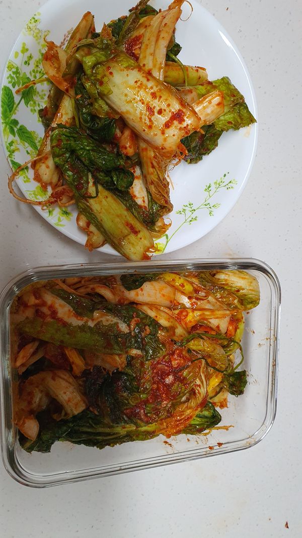 4Kg 받아서 얼갈이 2단 섞어 김치 담았지요. 어리고 연해서 좋긴한데 꽤 다듬는 시간이 걸리더이다. 홍고추 두봉지 사고 배 반쪽 갈아넣어 풀국 쒀서 슴슴하니 담아놓았습니다. 삶아 나물로 무쳐도 좋을만큼 연해서 맛은 있네요. 생김치로도 먹고 새콤하니 익을때까지는 잘 먹을 거같아요. 작은통에 세통으로 나누어담으니 얼마 안되더이다. 두 아이들네하고 세집 나누어먹고 다시 또 주문 넣을께요. 물김치 담아도 좋을 길이감에 생으로 송송 썰어 비빔밥으로 먹어도 좋을만큼 연하고 풋풋한 향 좋았습니다.