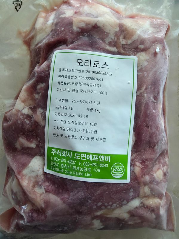 국내산 냉장 무항생제 수제 오리 로스 1kg*1팩