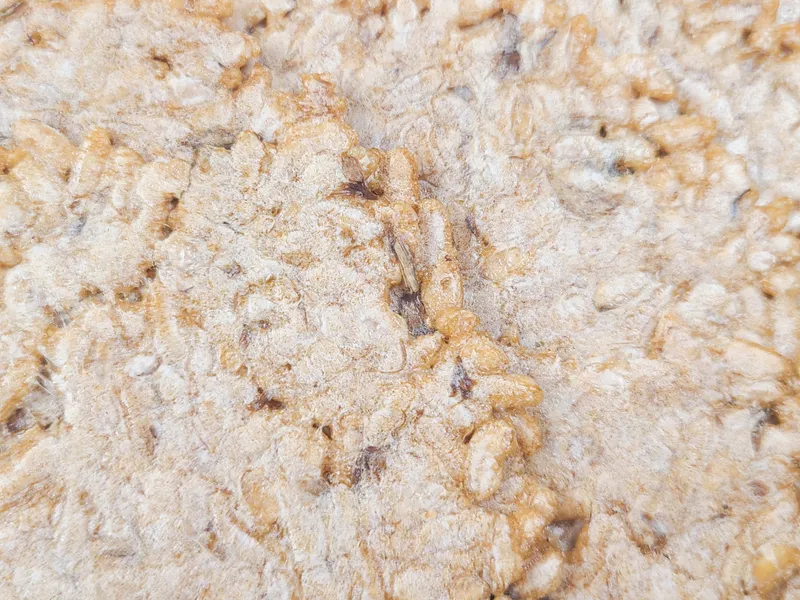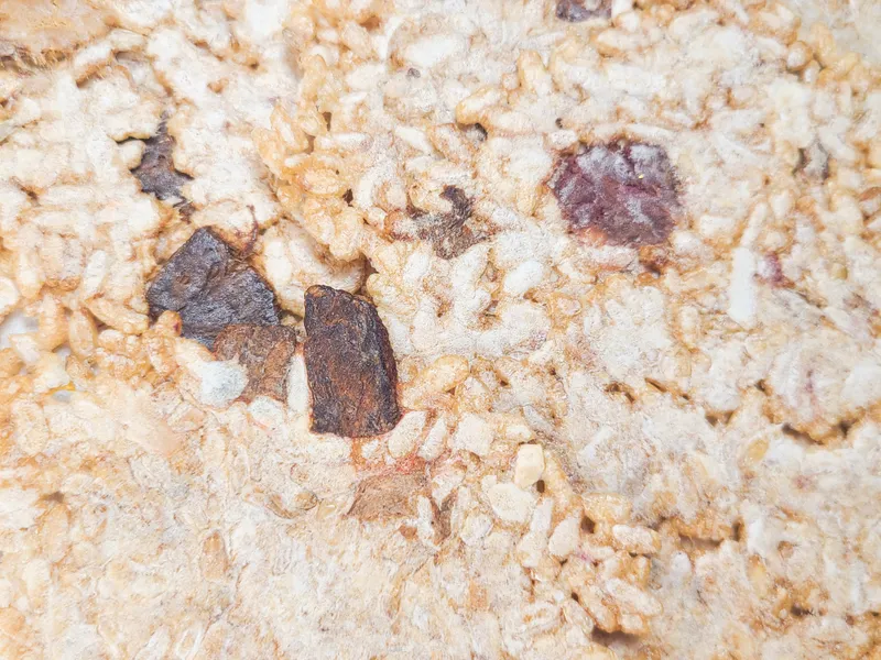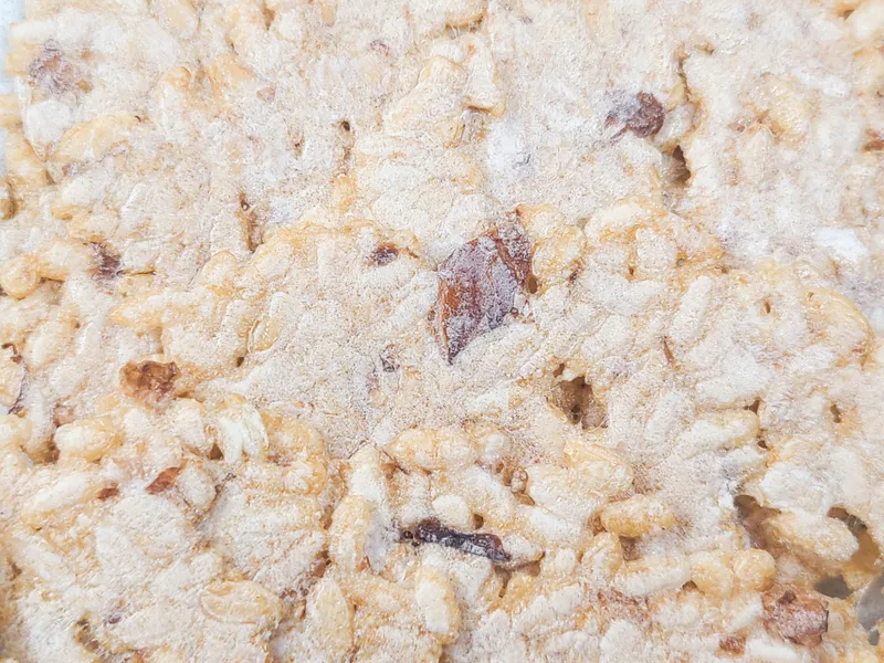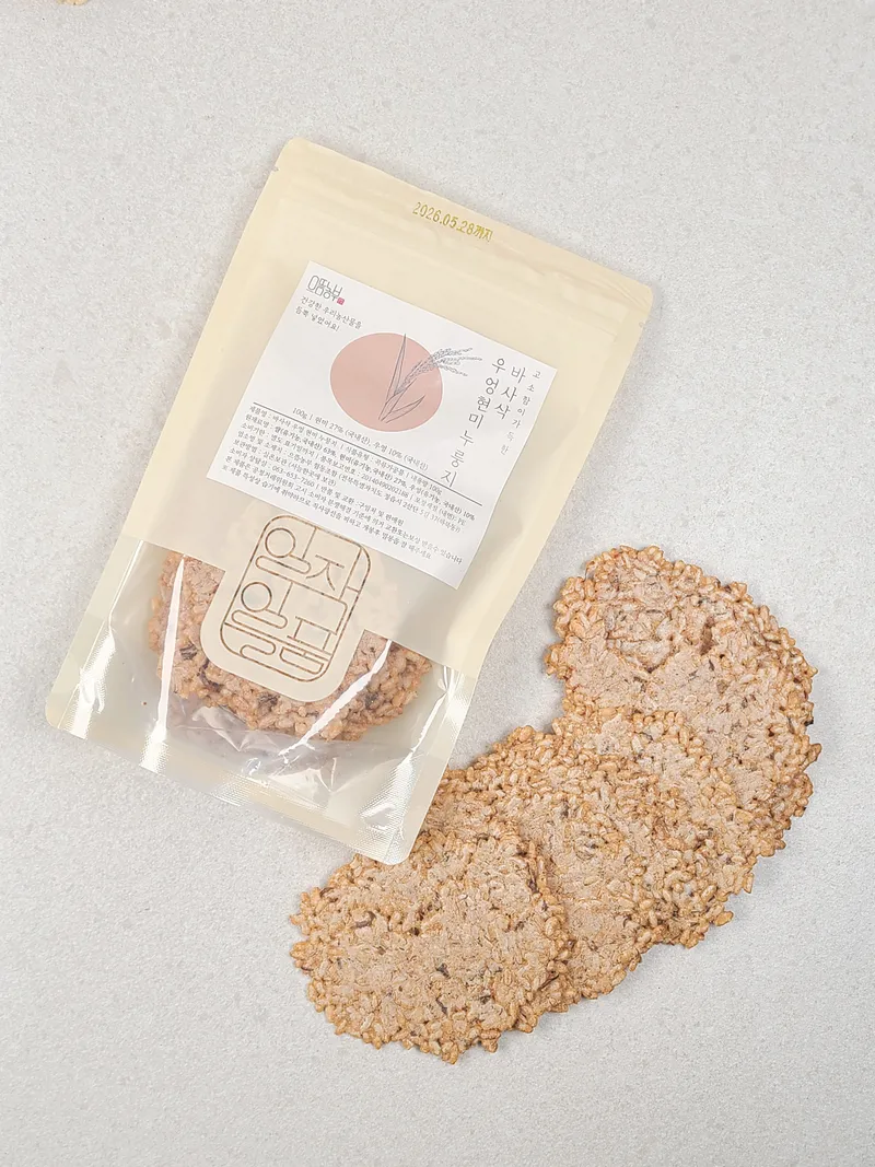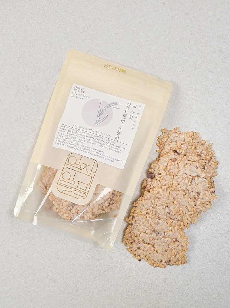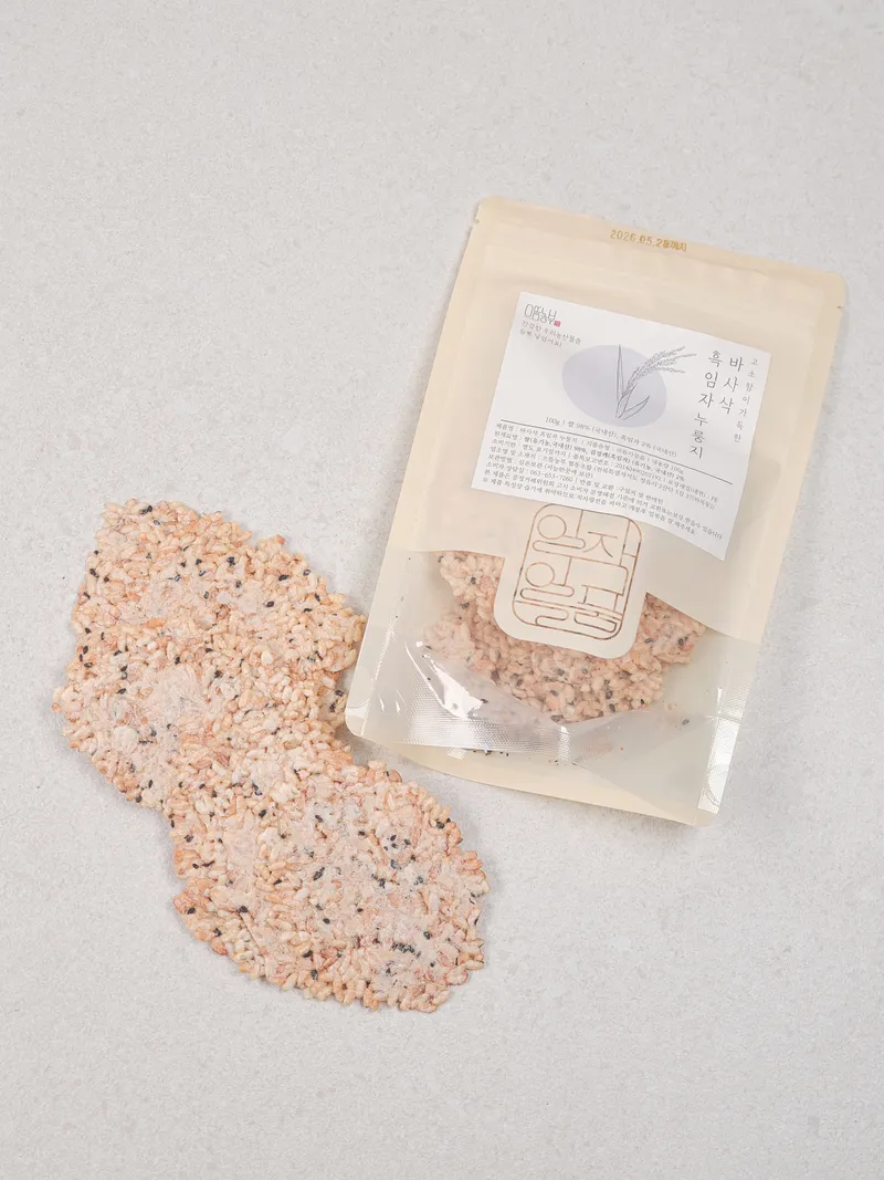유기농 재료로 만든 누룽지를 냄비에 담고