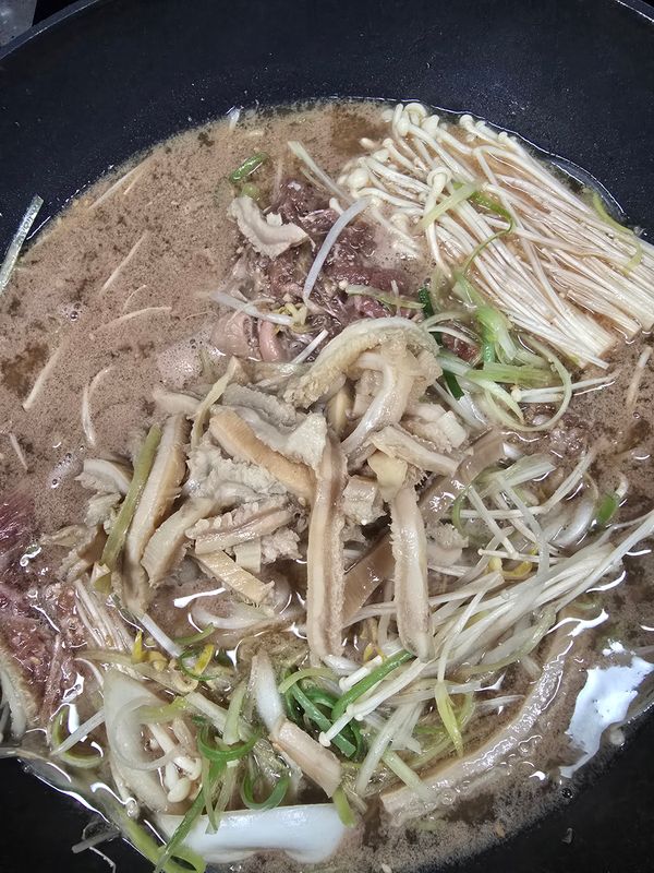사골국물에 스지와 깐양 함께 넣고 끓여서 스지와 깐양은 와사비 간장에 찍어 먹었는데 양도 넉넉해서 푸짐하게 잘먹었습니다~