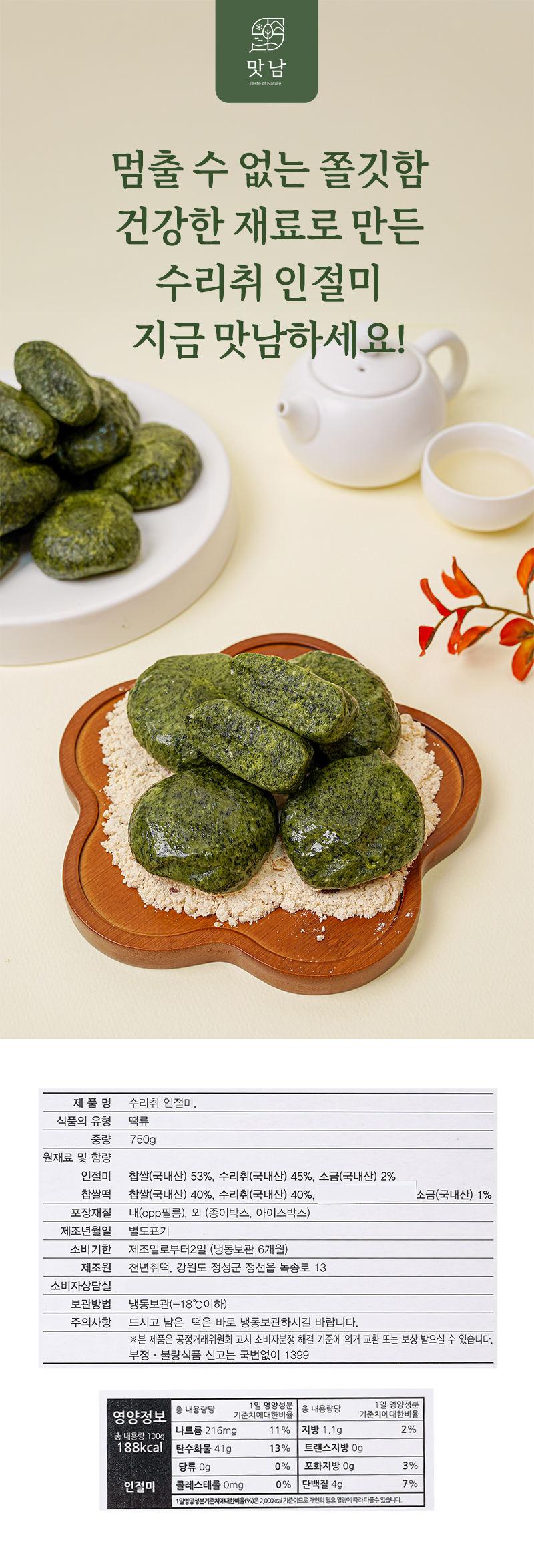 [푸드맛남] 강원도 정선 수리취 인절미 750g 15개 (선물상자)